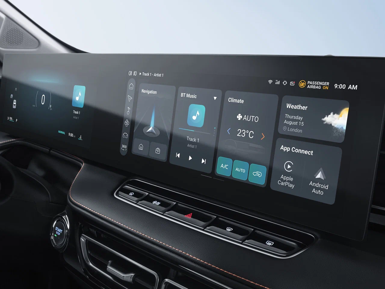 - 12,3” тачскрин-дисплей управления функциями развлечения и комфорта